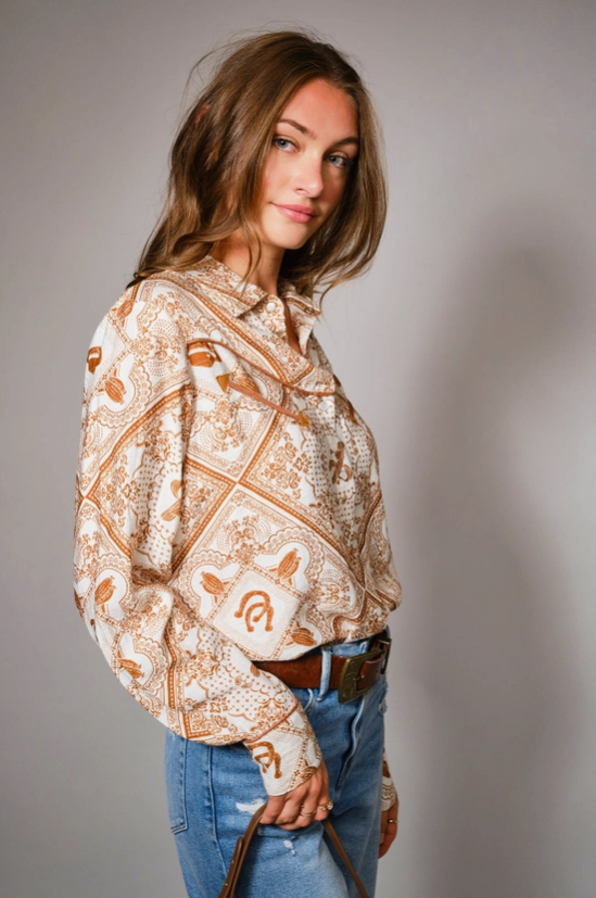 Blue B Western Printed Long Sleeve Button-Up Shirt