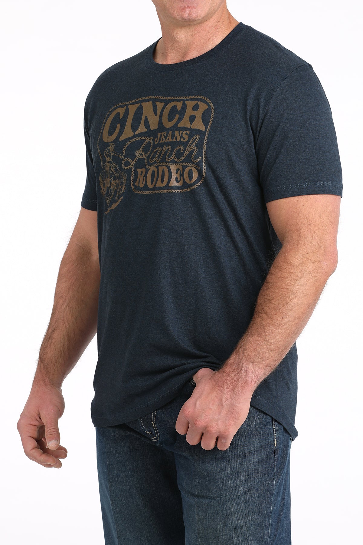 Crafted by CINCH, this navy short-sleeve tee shirt features a soft, durable cotton-poly blend for all-day comfort and easy care. With a classic crew neck and a bold CINCH Rodeo front screen print, you can count on authentic Western style with a casual edge. Perfect for everyday wear, this tee pairs effortlessly with your favorite jeans for a laid-back, rodeo-ready look.