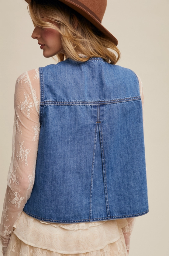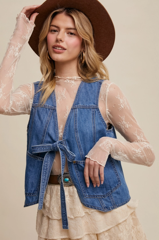 Listicle Denim Tie Front Vest