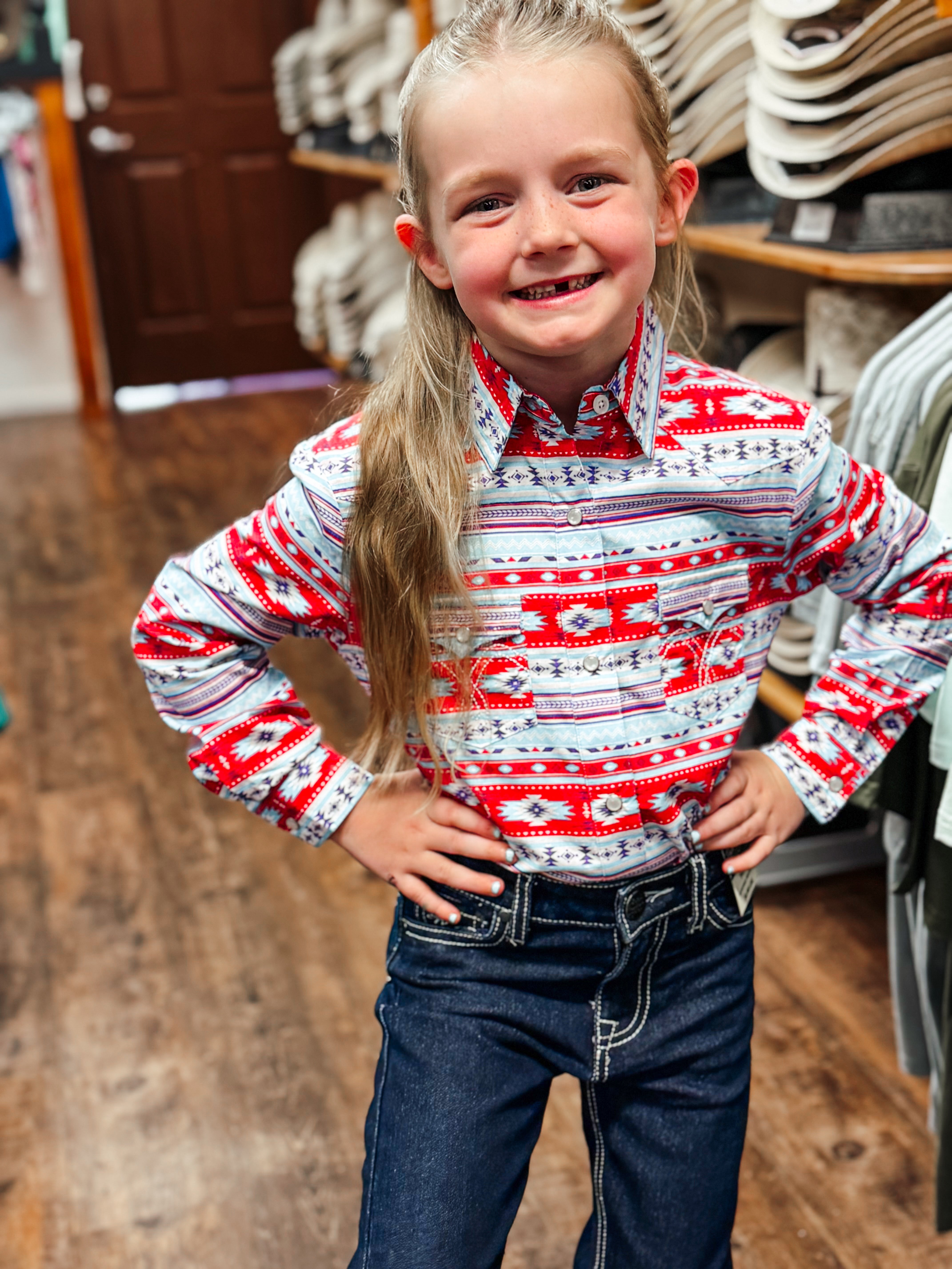 Panhandle Youth Cherokee Blouse.  Snap button closures.